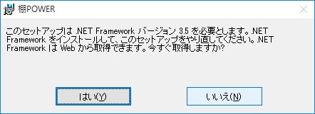 Windows 8.1 / 10 / 11 をご使用でインストール時に下記「このセットアップは.NET Framework バージョン3.5 を必要とします。~」メッセージが表示された場合は、インストール前に下記手順を行ってください。