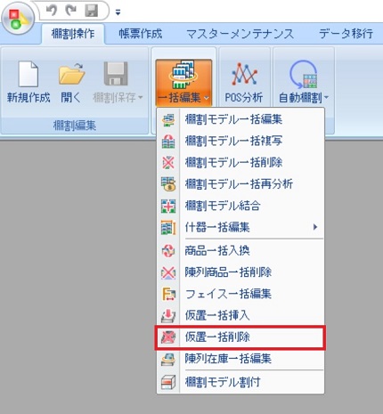 複数の棚割モデルに対して一括で仮置内商品の削除処理をしたい場合などに活用できます。